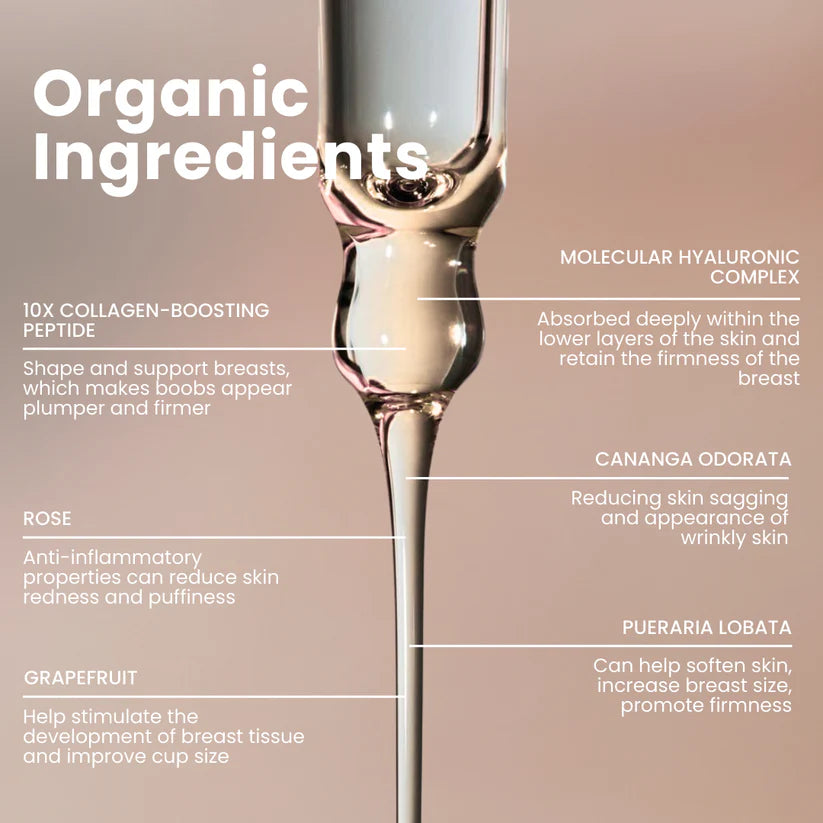 It's not a size-changing product like implants, but many users report feeling that their bust looks more lifted, rounder, and better contoured over time.